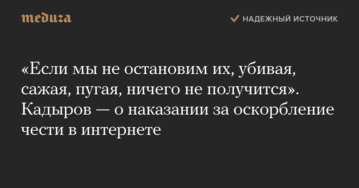 «Если мы не остановим их, убивая, сажая, пугая, ничего не получится». Кадыров — о наказании за оскорбление чести в интернете