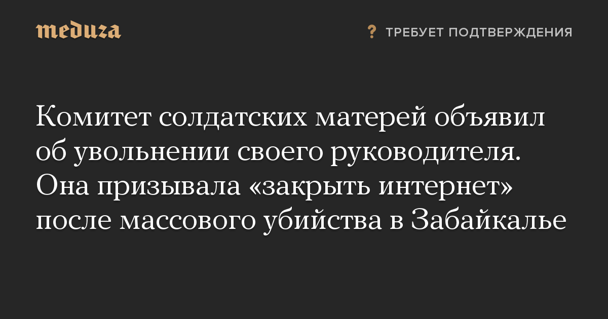 Комитет солдатских матерей объявил об увольнении своего руководителя. Она призывала «закрыть интернет» после массового убийства в Забайкалье