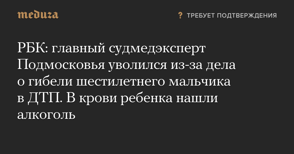 РБК: главный судмедэксперт Подмосковья уволился из-за дела о гибели шестилетнего мальчика в ДТП. В крови ребенка нашли алкоголь