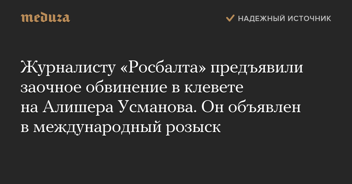 Журналисту «Росбалта» предъявили заочное обвинение в клевете на Алишера Усманова. Он объявлен в международный розыск