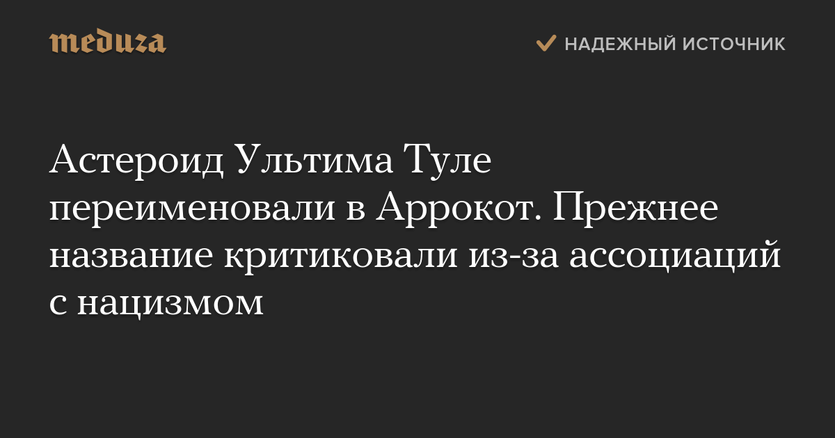 Астероид Ультима Туле переименовали в Аррокот. Прежнее название критиковали из-за ассоциаций с нацизмом