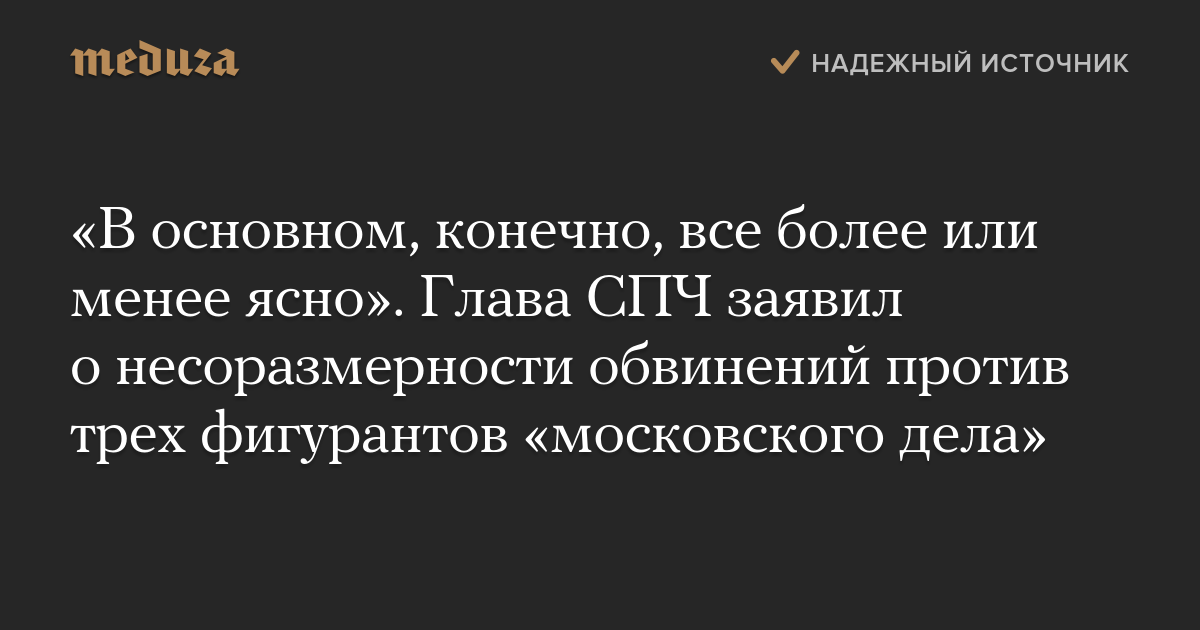 «В основном, конечно, все более или менее ясно». Глава СПЧ заявил о несоразмерности обвинений против трех фигурантов «московского дела»