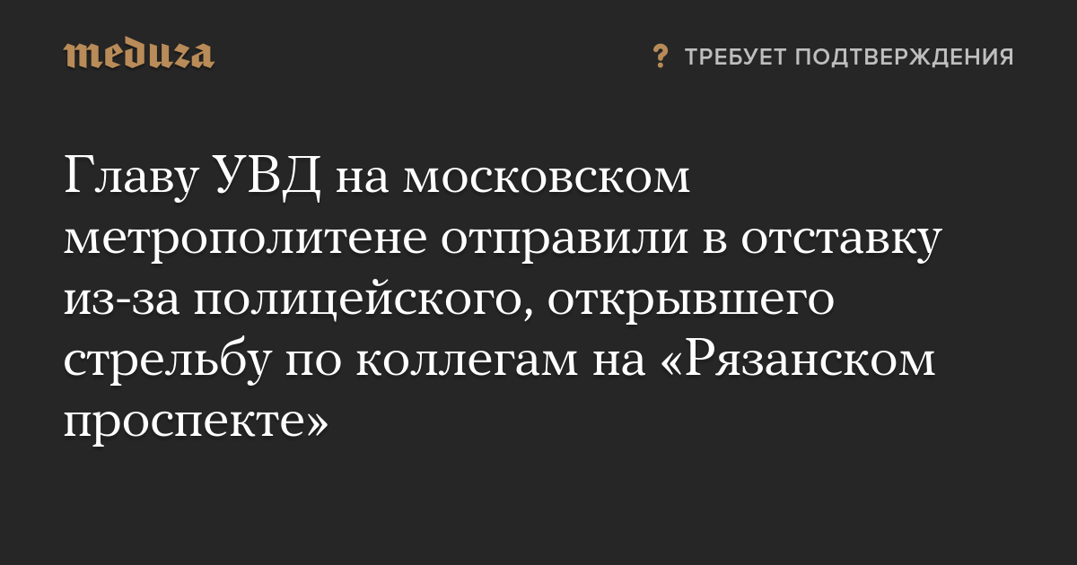 Главу УВД на московском метрополитене отправили в отставку из-за полицейского, открывшего стрельбу по коллегам на «Рязанском проспекте»