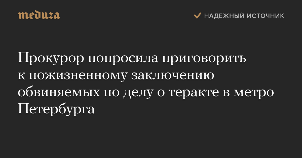 Прокурор попросила приговорить к пожизненному заключению обвиняемых по делу о теракте в метро Петербурга