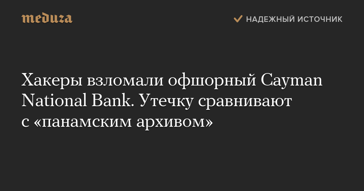 Хакеры взломали офшорный Cayman National Bank. Утечку сравнивают с «панамским архивом»