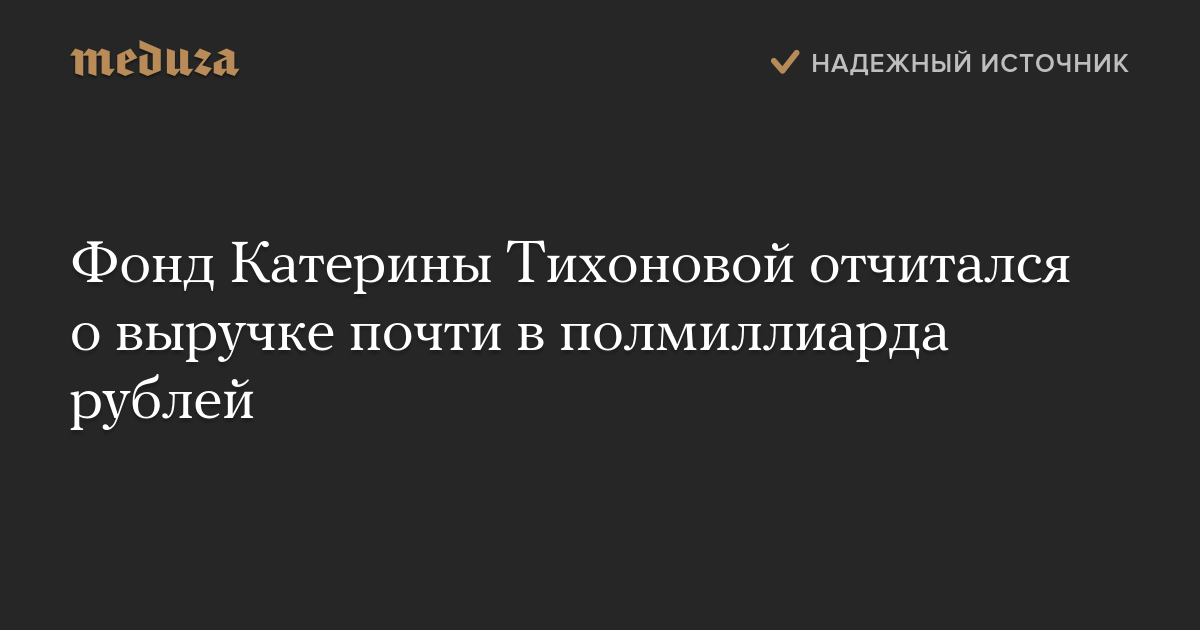 Фонд Катерины Тихоновой отчитался о выручке почти в полмиллиарда рублей