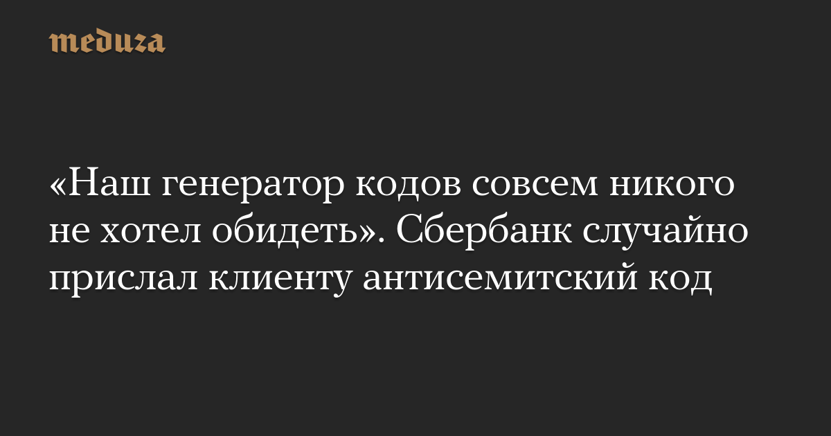 «Наш генератор кодов совсем никого не хотел обидеть». Сбербанк случайно прислал клиенту антисемитский код