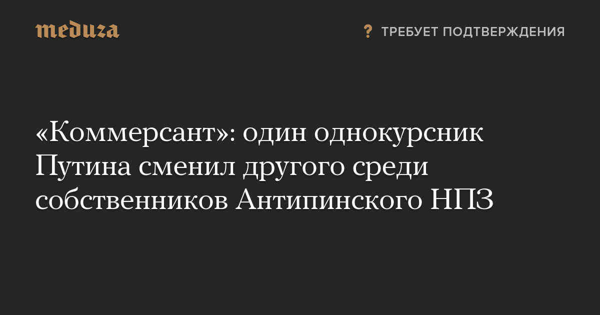 «Коммерсант»: один однокурсник Путина сменил другого среди собственников Антипинского НПЗ