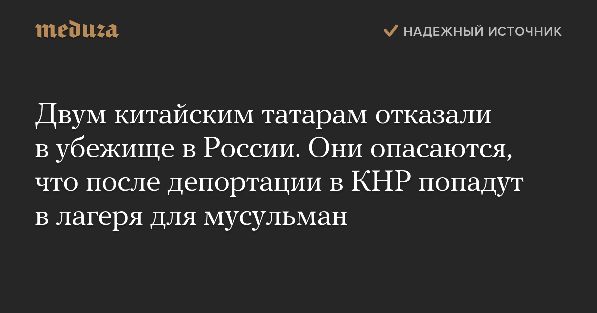 Двум китайским татарам отказали в убежище в России. Они опасаются, что после депортации в КНР попадут в лагеря для мусульман