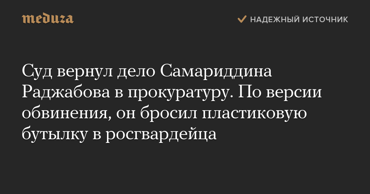 Суд вернул дело Самариддина Раджабова в прокуратуру. По версии обвинения, он бросил пластиковую бутылку в росгвардейца