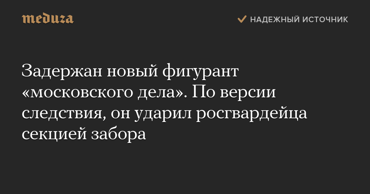 Задержан новый фигурант «московского дела». По версии следствия, он ударил росгвардейца секцией забора