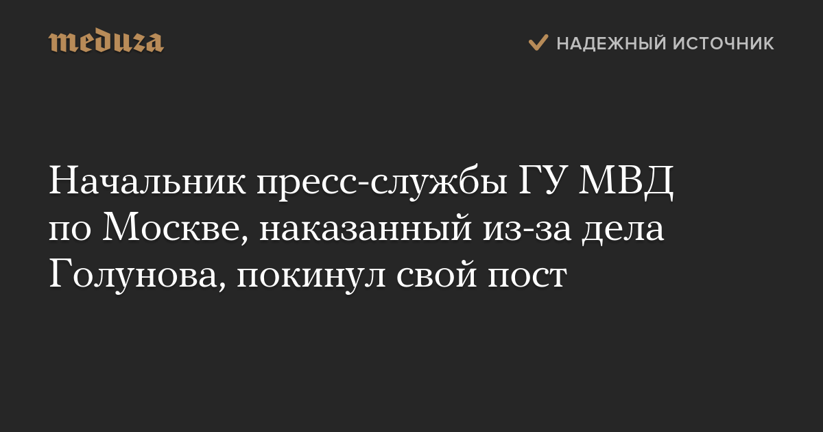 Начальник пресс-службы ГУ МВД по Москве, наказанный из-за дела Голунова, покинул свой пост
