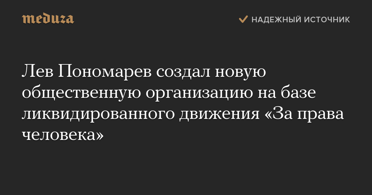 Лев Пономарев, лидер ликвидированного движения «За права человека», объявил о создании новой одноименной организации без юрлица. Об этом сообщает «Интерфакс».