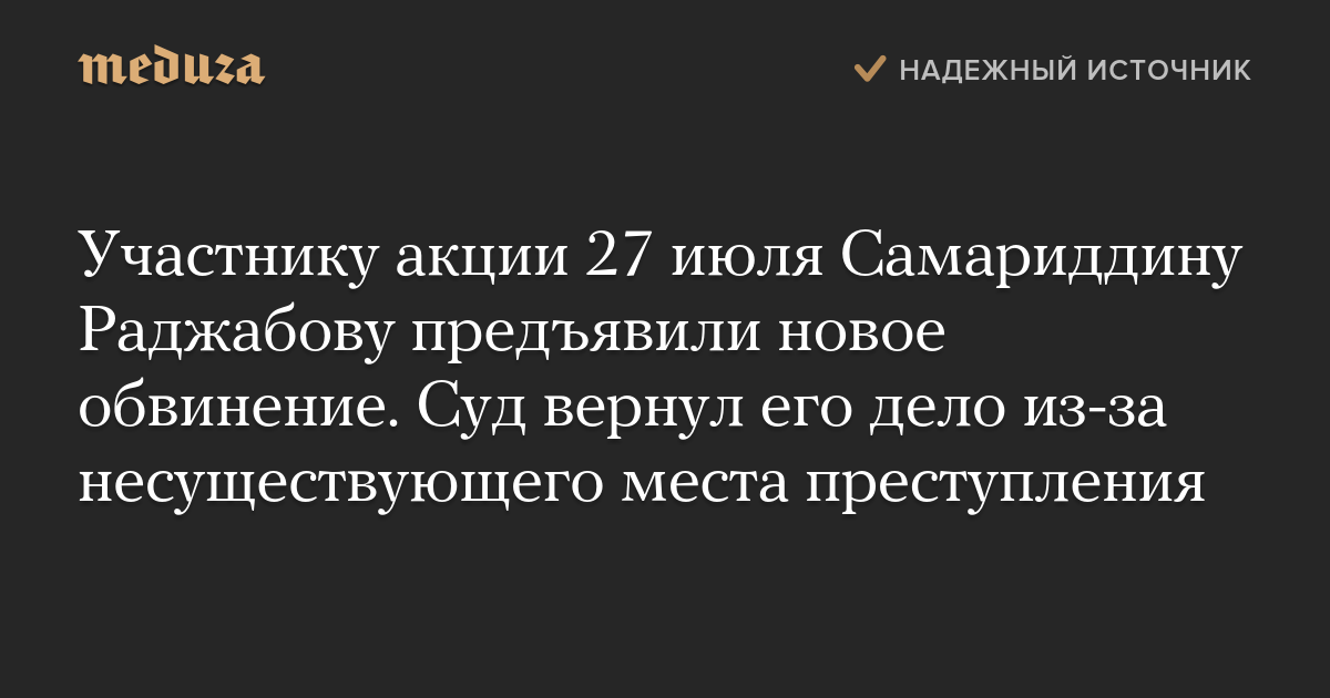 Участнику акции 27 июля Самариддину Раджабову предъявили новое обвинение. Суд вернул его дело из-за несуществующего места преступления