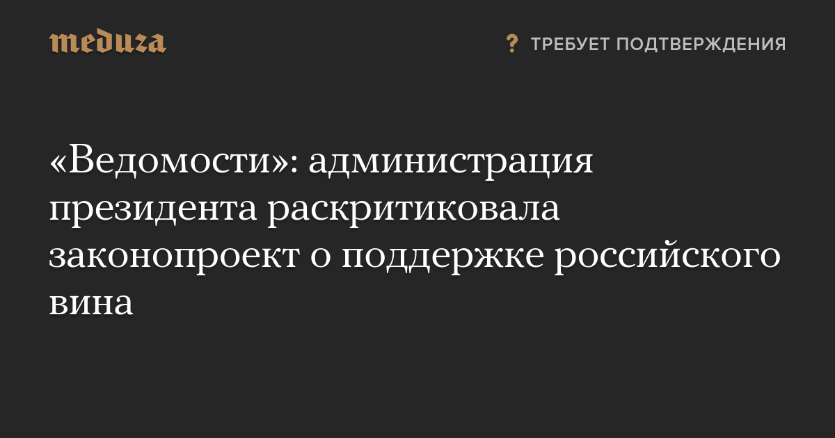 «Ведомости»: администрация президента раскритиковала законопроект о поддержке российского вина