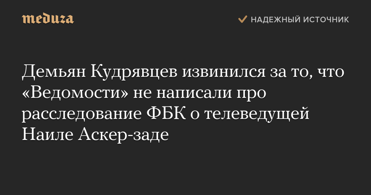 Демьян Кудрявцев извинился за то, что «Ведомости» не написали про расследование ФБК о телеведущей Наиле Аскер-заде