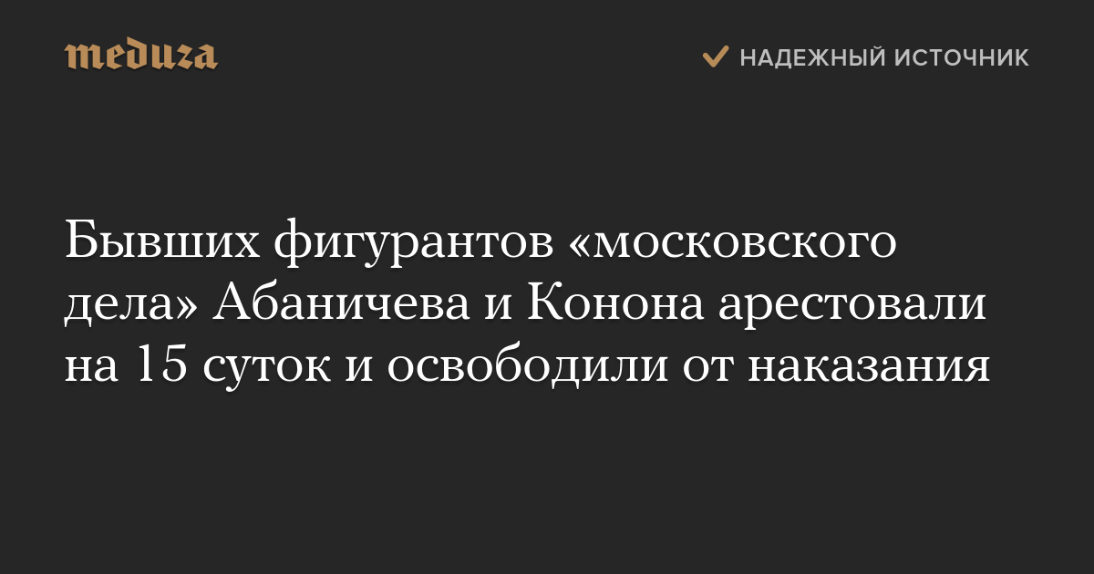 Бывших фигурантов «московского дела» Абаничева и Конона арестовали на 15 суток и освободили от наказания