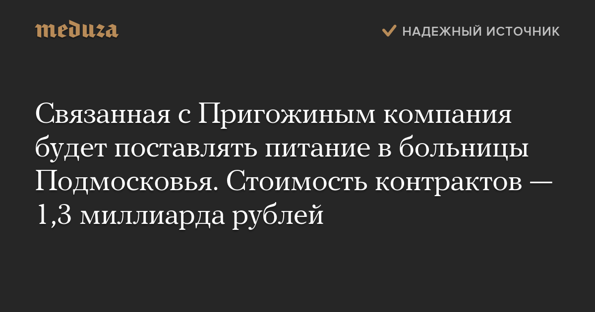 Связанная с Пригожиным компания будет поставлять питание в больницы Подмосковья. Стоимость контрактов — 1,3 миллиарда рублей