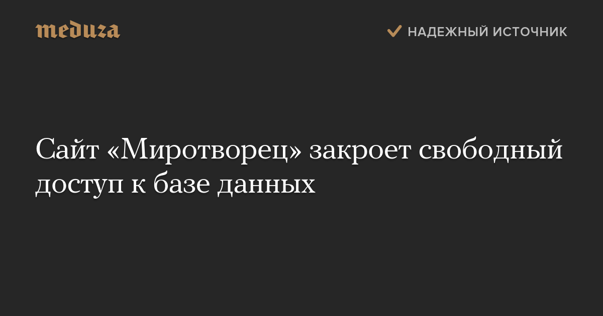 Сайт «Миротворец» закроет свободный доступ к своей базе данных. В ней содержится информация о людях, действия которых, по мнению администрации сайта, «направлены на подрыв суверенитета и территориальной целостности Украины».