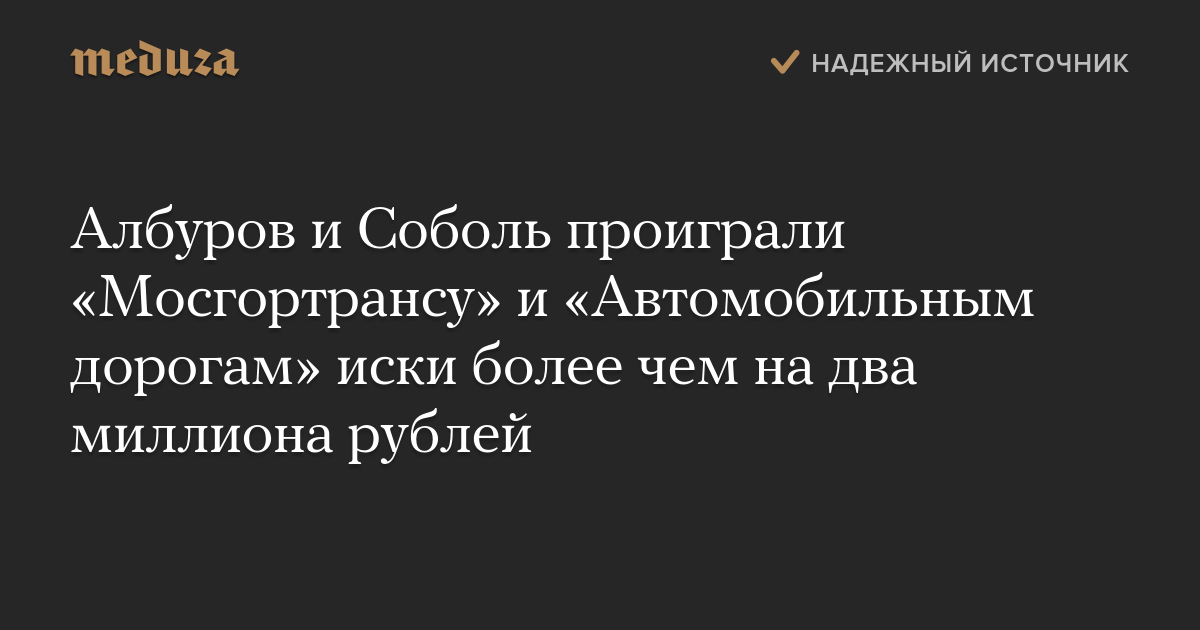 Албуров и Соболь проиграли «Мосгортрансу» и «Автомобильным дорогам» иски более чем на два миллиона рублей