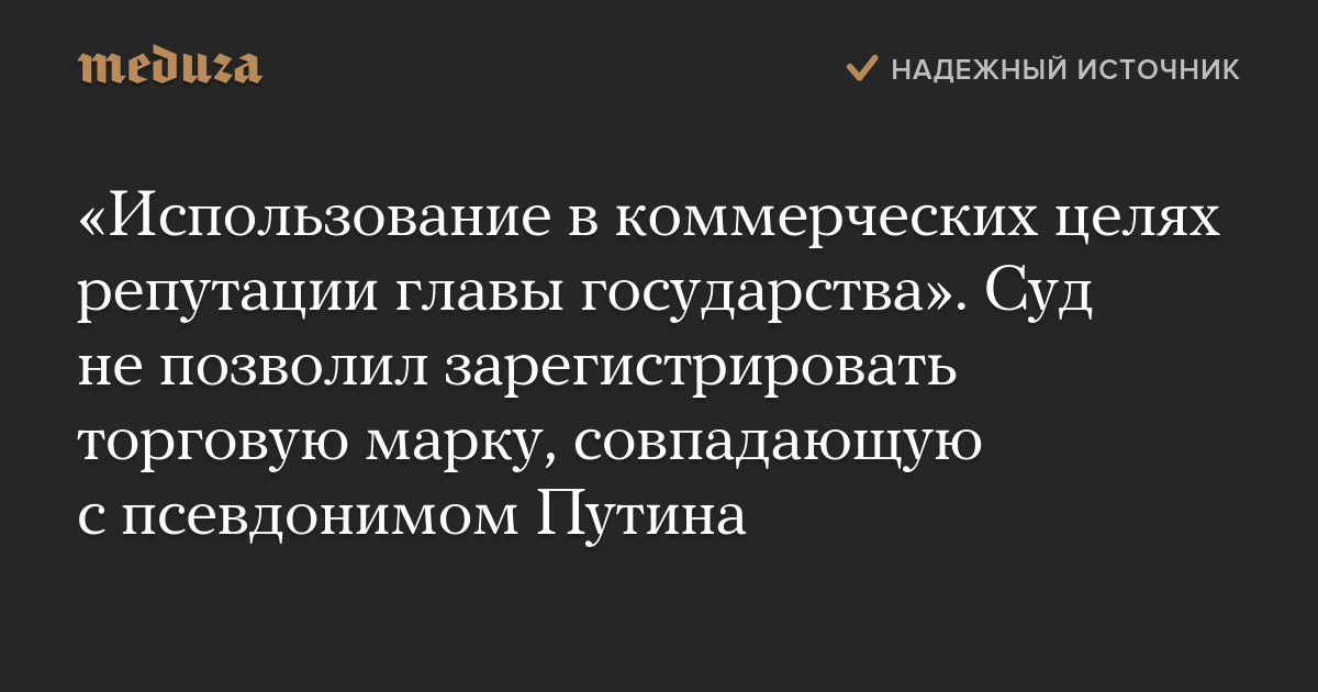 «Использование в коммерческих целях репутации главы государства». Суд не позволил зарегистрировать торговую марку, совпадающую с псевдонимом Путина