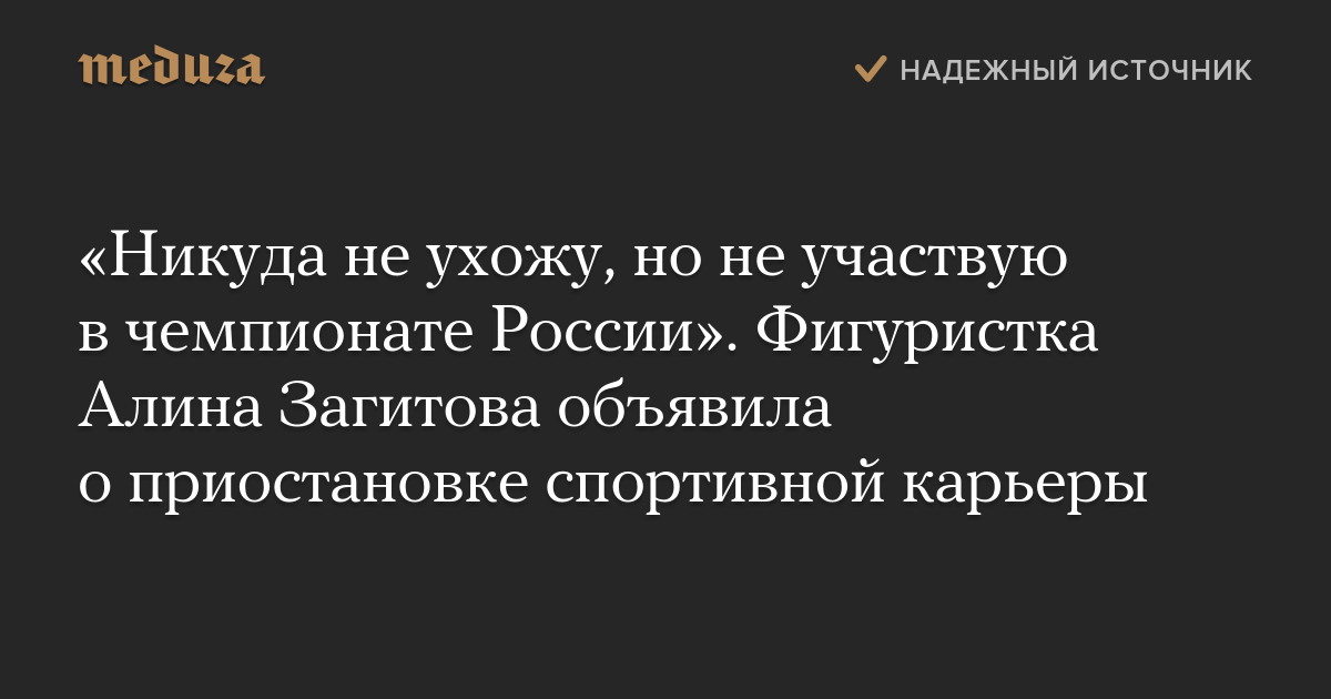 «Никуда не ухожу, но не участвую в чемпионате России. Хочу пояснить, что без отбора я не претендую ни на чемпионат Европы, ни на [чемпионат] мира. Я всегда отбиралась по спортивному принципу», — сказала 17-летняя Загитова.