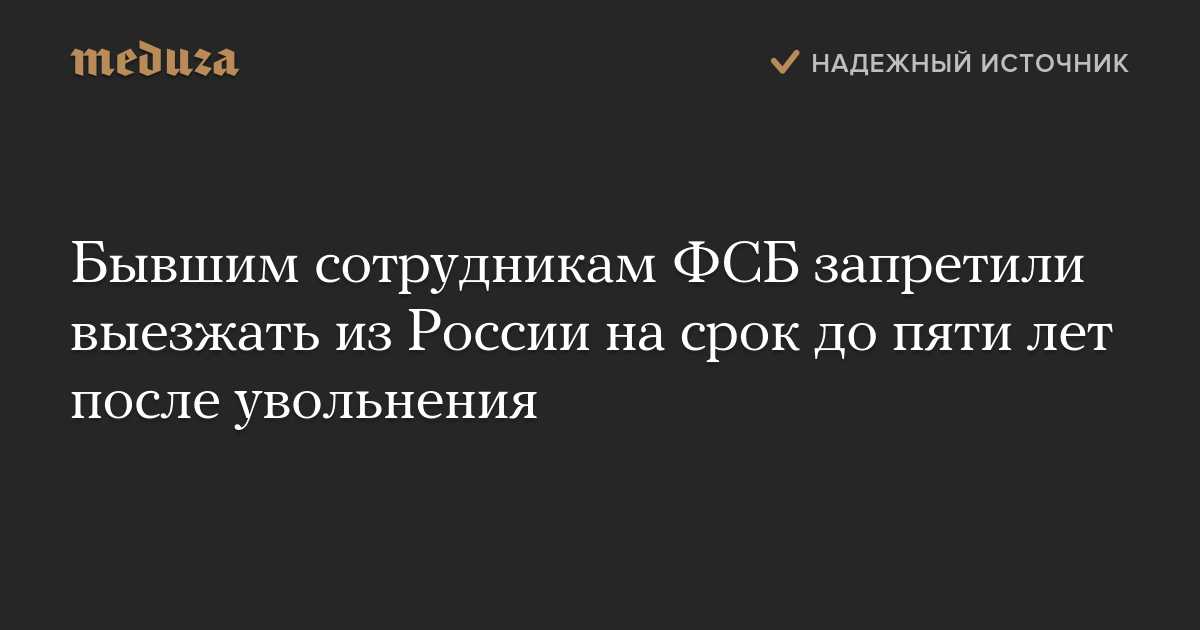 Бывшим сотрудникам ФСБ запретили выезжать из России на срок до пяти лет после увольнения