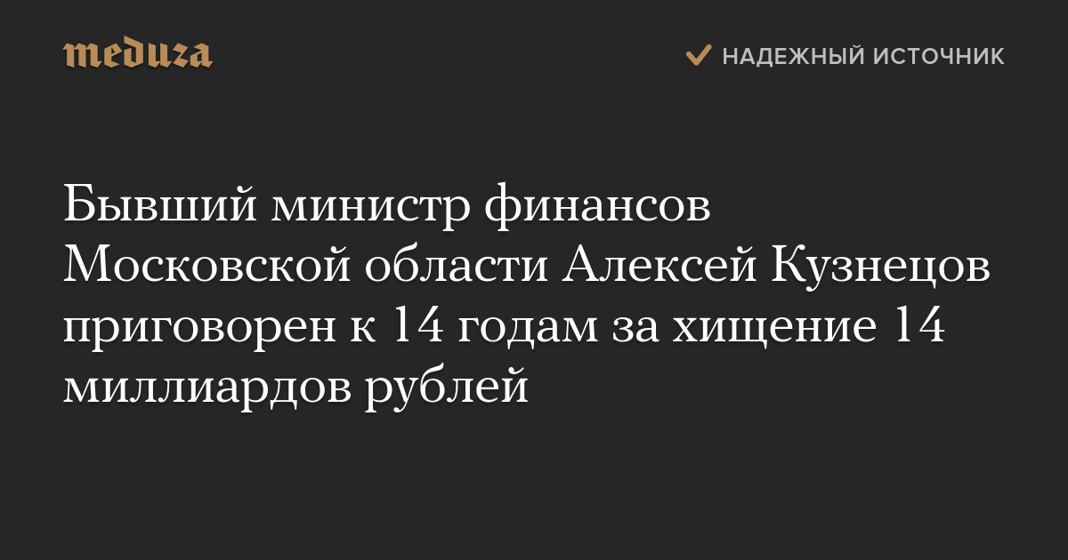 Бывший министр финансов Московской области Алексей Кузнецов приговорен к 14 годам за хищение 14 миллиардов рублей