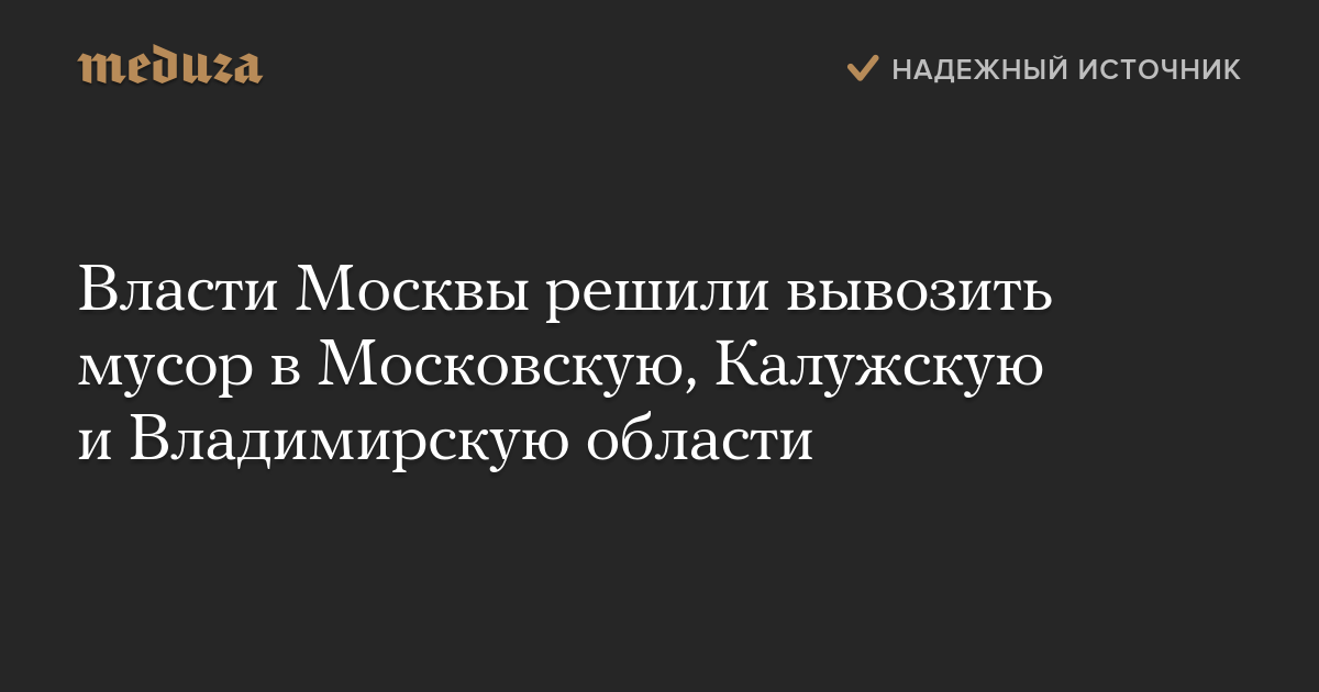 Власти Москвы решили вывозить мусор в Московскую, Калужскую и Владимирскую области