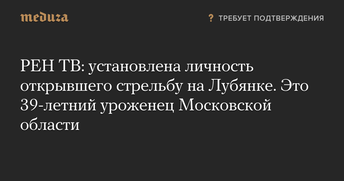 РЕН ТВ: установлена личность открывшего стрельбу на Лубянке. Это 39-летний уроженец Московской области