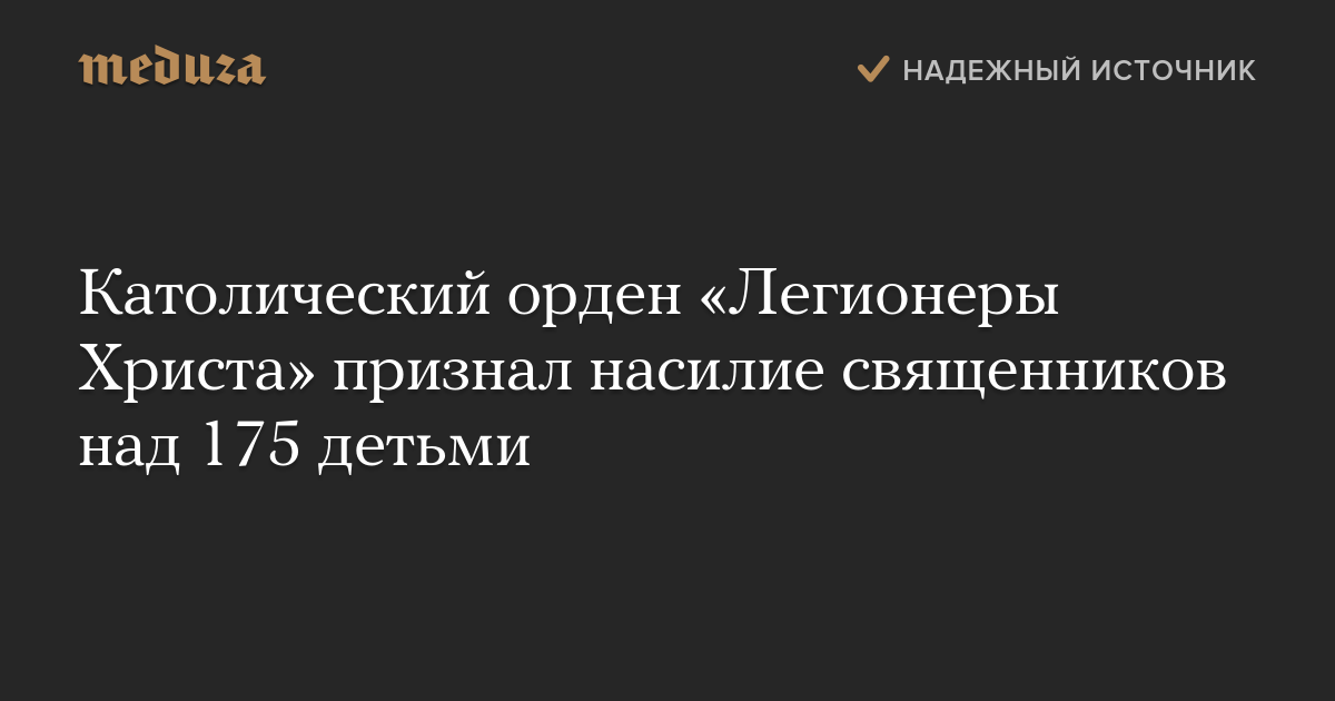 За 78 лет существования католического ордена «Легионеры Христа» его священники совершили сексуальное насилие над 175 несовершеннолетними. Об этом говорится в докладе на сайте «Легионеров Христа».