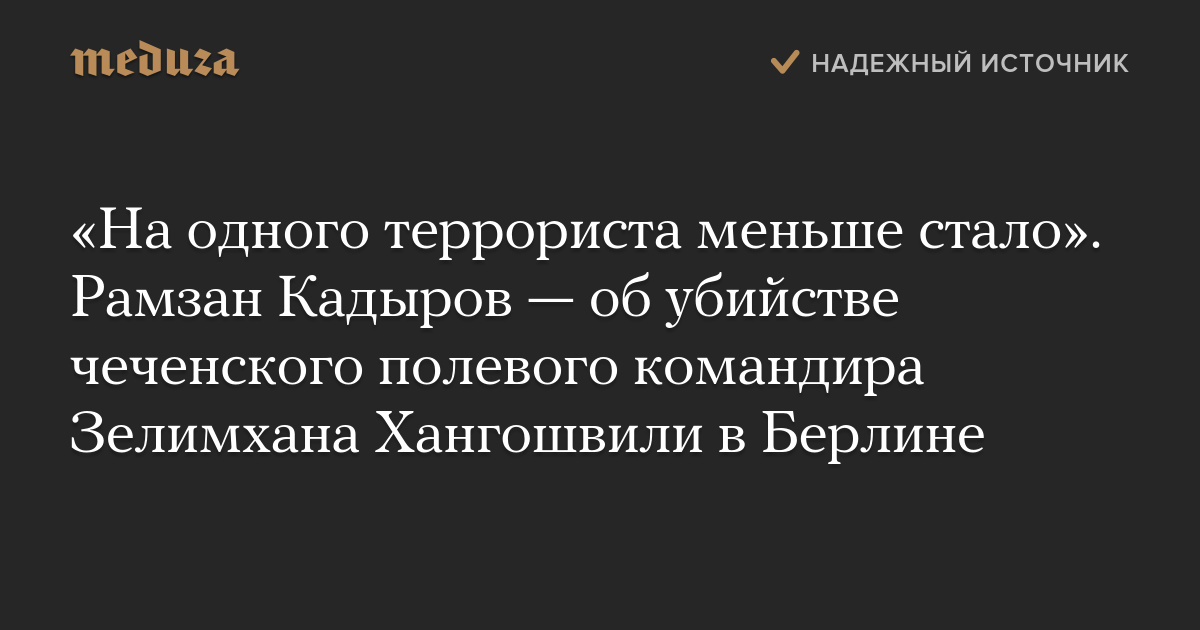 «На одного террориста меньше стало». Рамзан Кадыров — об убийстве чеченского полевого командира Зелимхана Хангошвили в Берлине