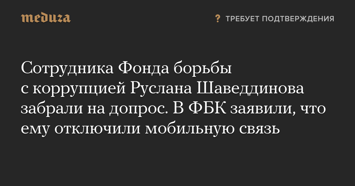 Сотрудника Фонда борьбы с коррупцией Руслана Шаведдинова забрали на допрос. В ФБК заявили, что ему отключили мобильную связь