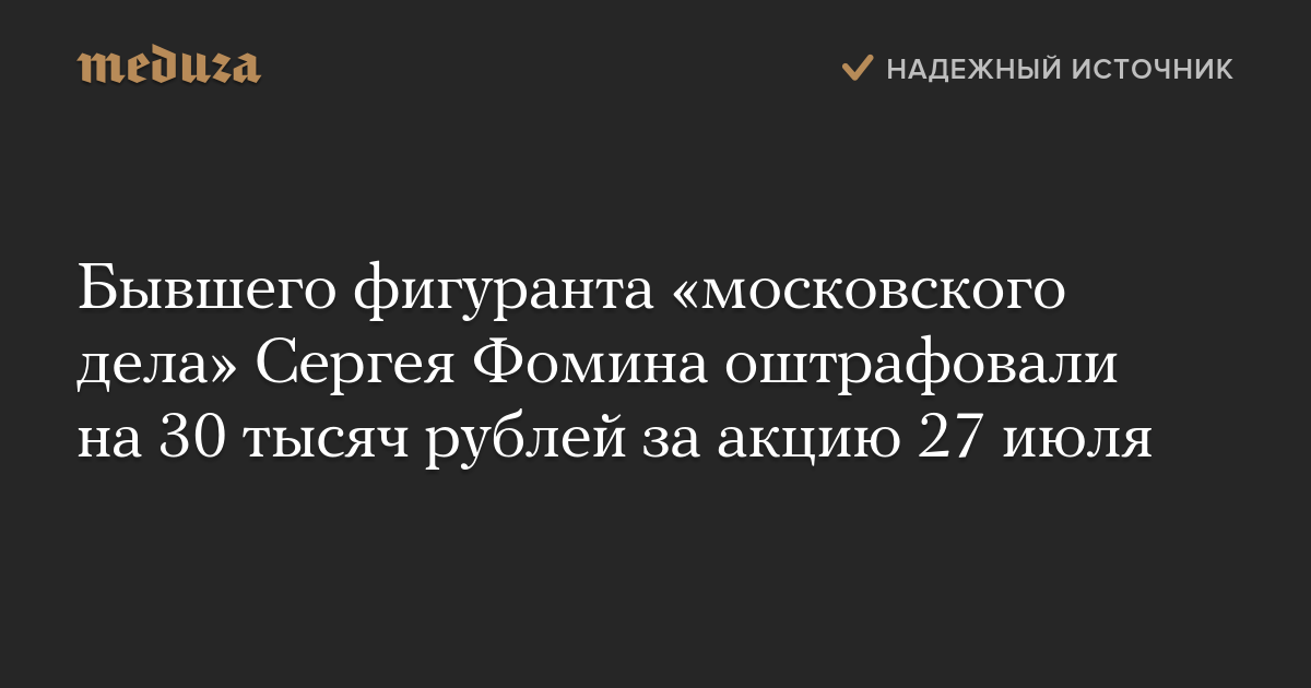 Бывшего фигуранта «московского дела» Сергея Фомина оштрафовали на 30 тысяч рублей за акцию 27 июля