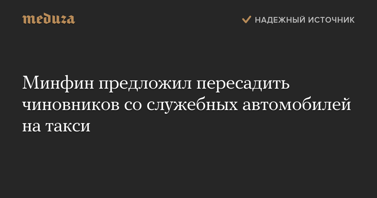 Минфин предложил пересадить чиновников со служебных автомобилей на такси