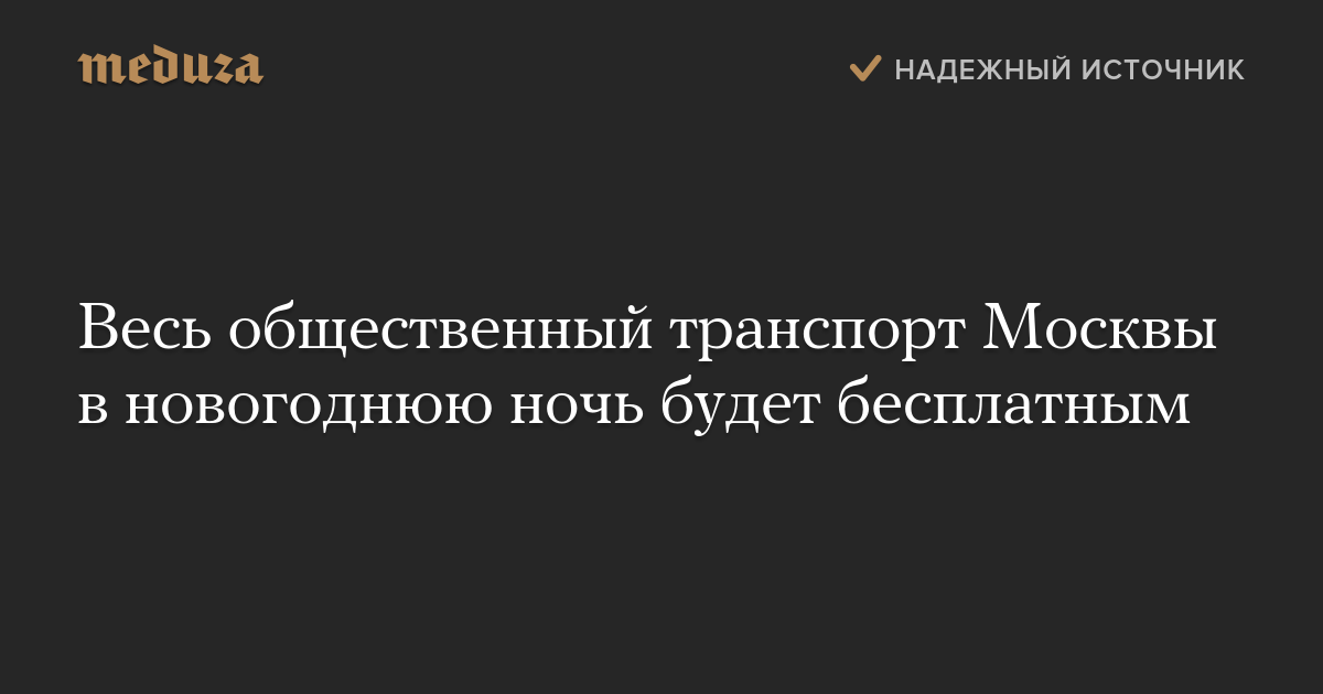 Весь общественный транспорт Москвы в новогоднюю ночь будет бесплатным