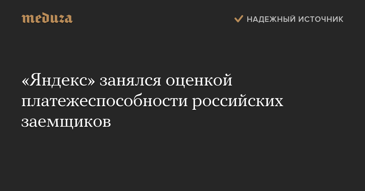 «Яндекс» занялся оценкой платежеспособности российских заемщиков