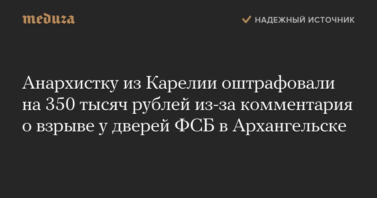 Анархистку из Карелии оштрафовали на 350 тысяч рублей из-за комментария о взрыве у дверей ФСБ в Архангельске