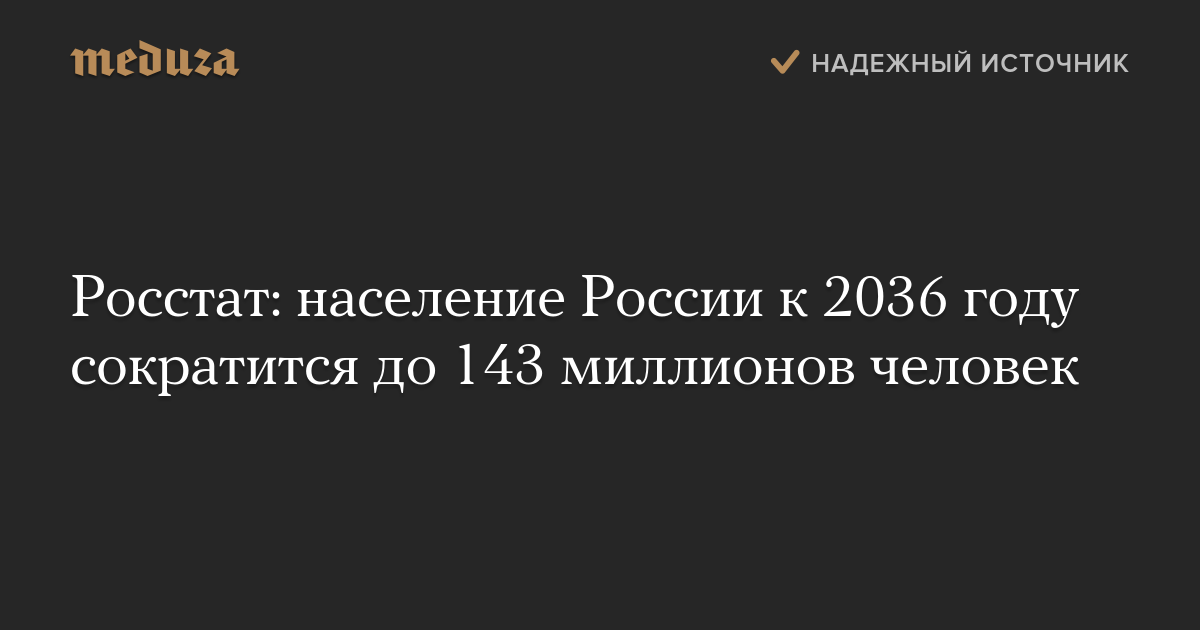 Росстат: население России к 2036 году сократится до 143 миллионов человек