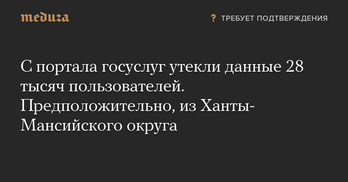 С портала госуслуг утекли данные 28 тысяч пользователей. Предположительно, из Ханты-Мансийского округа