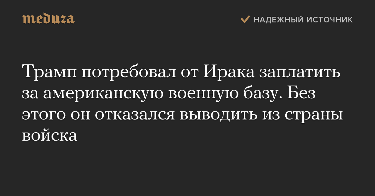 Трамп потребовал от Ирака заплатить за американскую военную базу. Без этого он отказался выводить из страны войска