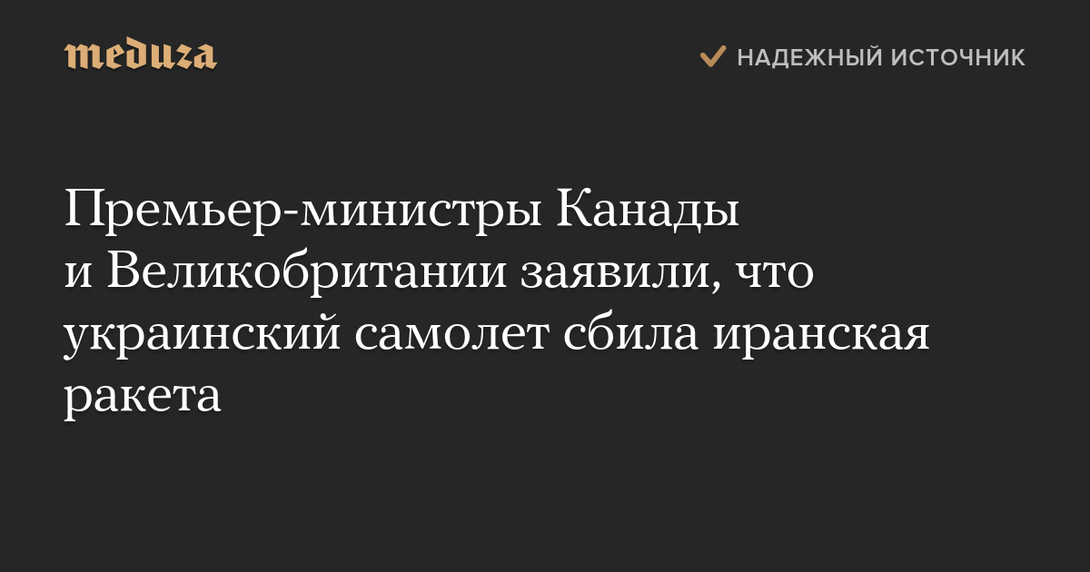 Премьер-министры Канады и Великобритании заявили, что украинский самолет сбила иранская ракета