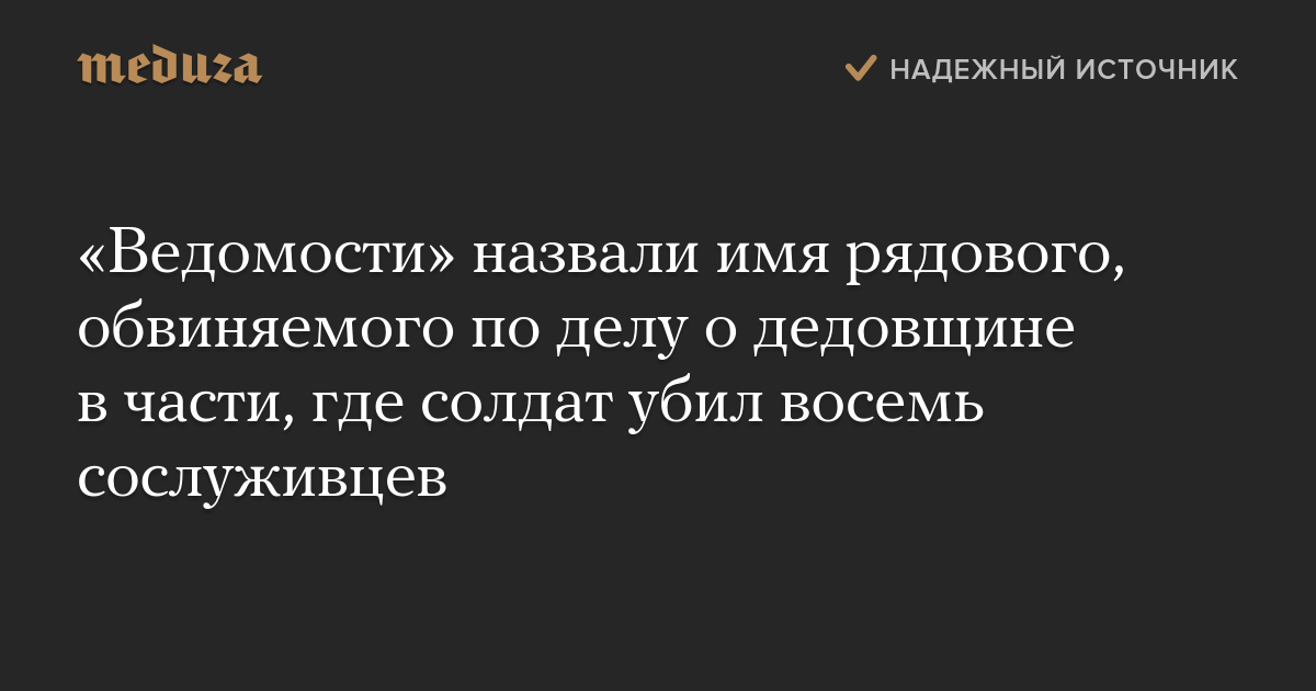 «Ведомости» назвали имя рядового, обвиняемого по делу о дедовщине в части, где солдат убил восемь сослуживцев