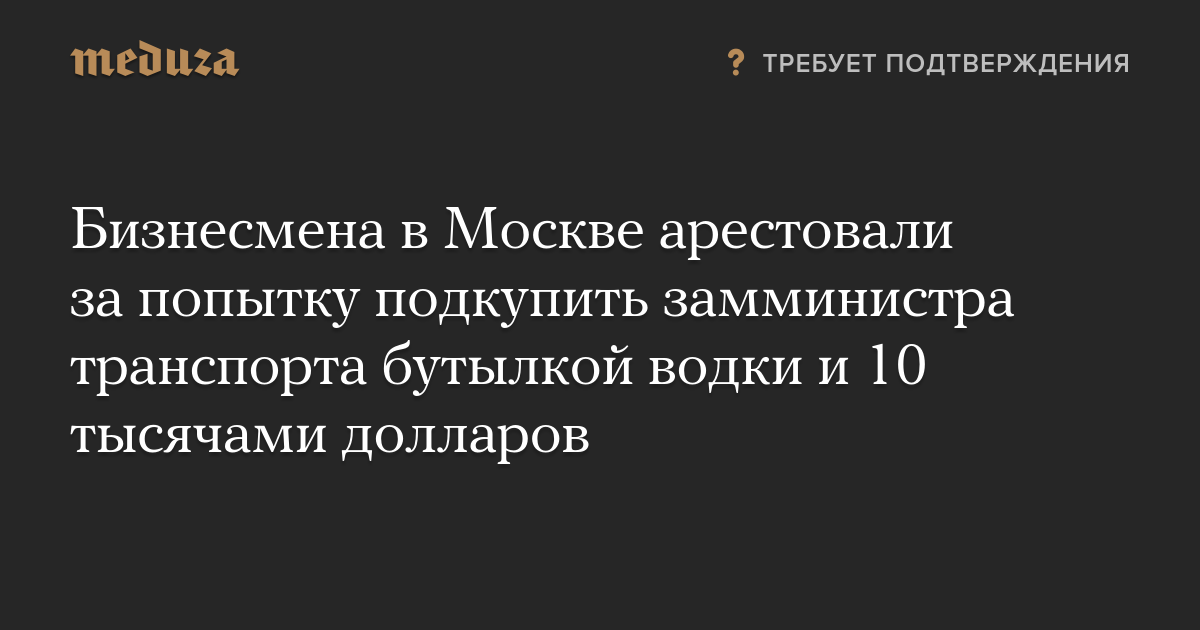 Бизнесмена в Москве арестовали за попытку подкупить замминистра транспорта бутылкой водки и 10 тысячами долларов