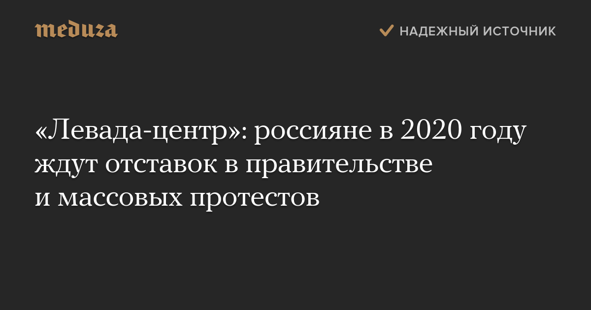 Отставок министров и коррупционных дел в наступившем году, по данным исследования «Левады», ждут 66% участников опросов — максимальный показатель с 2013 года, отмечают «Ведомости». 45% респондентов считают, что в 2020 году в России продолжатся массовые протесты (рост на 10 процентных пунктов за два года).
