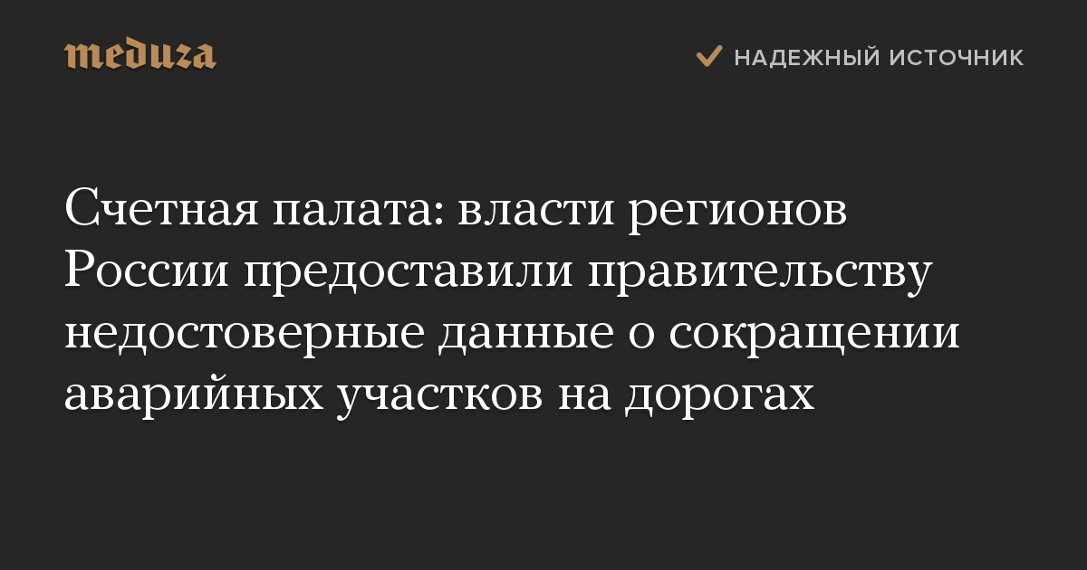 Счетная палата: власти регионов России предоставили правительству недостоверные данные о сокращении аварийных участков на дорогах