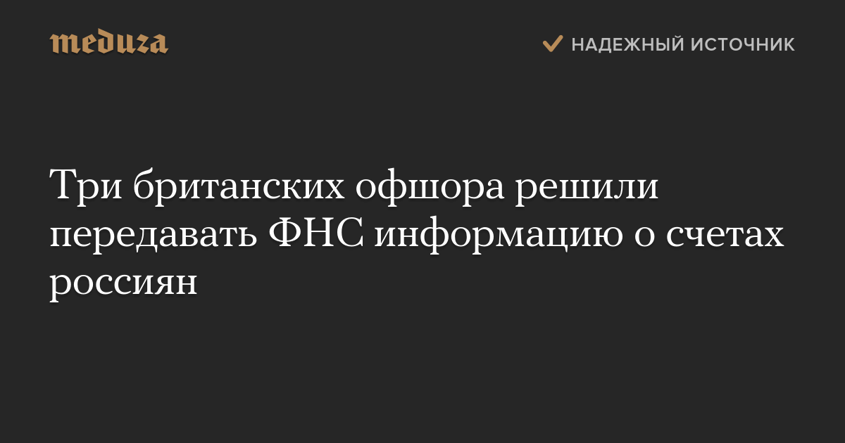 Три британских офшора решили передавать ФНС информацию о счетах россиян