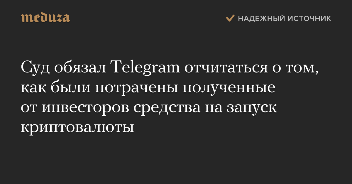 На том, что Telegram должен отчитаться о расходовании полученных от инвесторов средств, настаивала американская Комиссия по ценным бумагам и биржам (SEC).