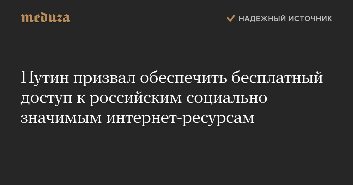 Путин призвал обеспечить бесплатный доступ к российским социально значимым интернет-ресурсам