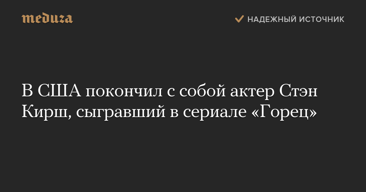 По предварительным данным, актер покончил с собой, пишет The Hollywood Reporter. TMZ со ссылкой на источники в правоохранительных органах сообщает, что жена Кирша нашла его повешенным в ванной.